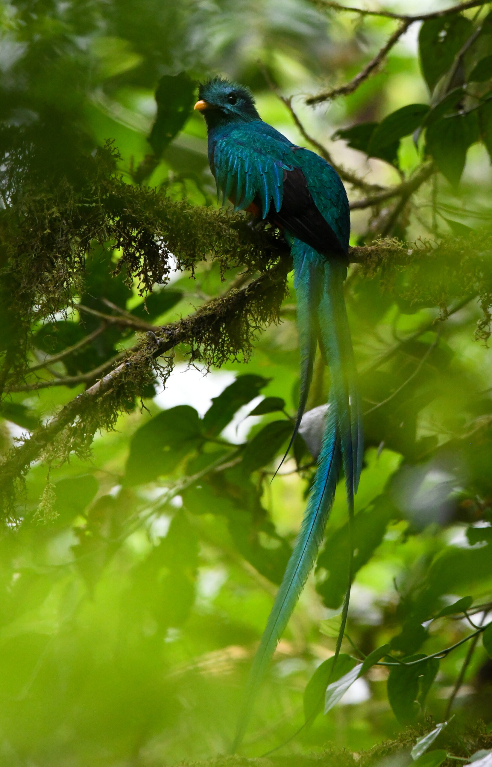 An icon of the cloud forest for its iridescent green plumage and long, flowing tail, the quetzal is one of the most sought-after sightings for any birdwatcher.Its diet is based primarily on wild fruits, such as avocadoIt nests in cavities in dead trees, often reused year after year